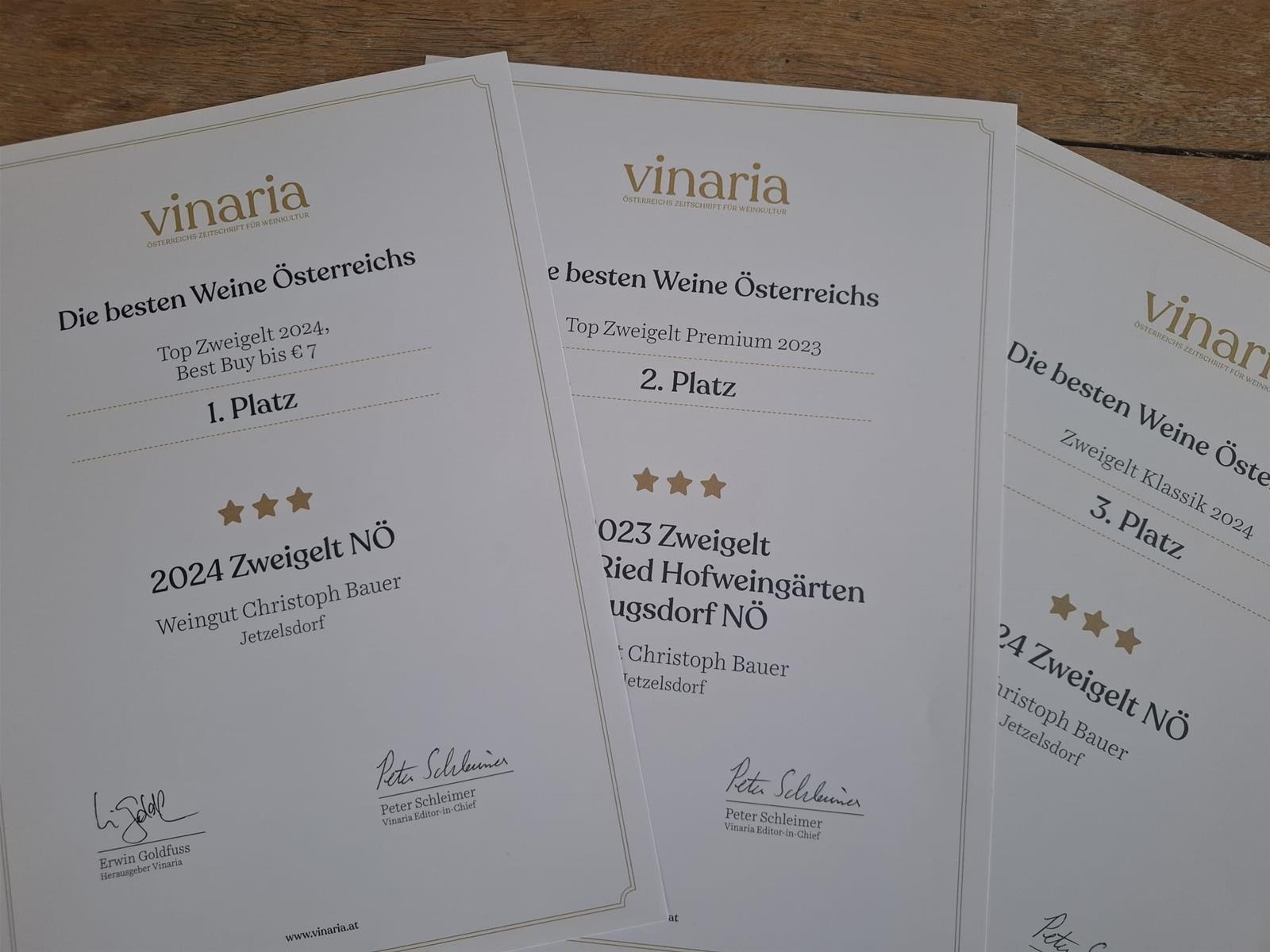 VINARIA Auszeichnungen für Zweigelt